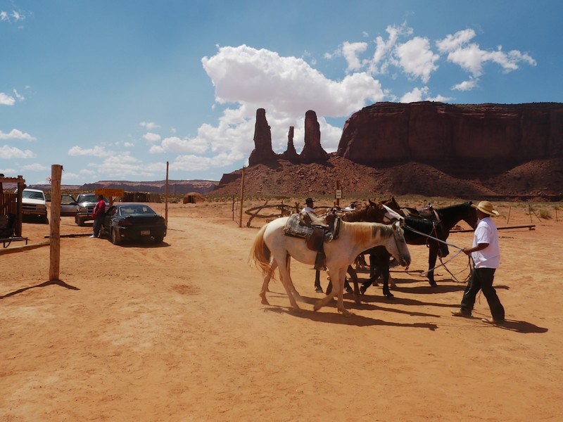 Ce matin, pour le plus grand plaisir d'Annwen, c'est randonnée à cheval. Durant 2 heures, nous serpenterons les petits chemins entres buttes et mesas. En principe, nous devrions avoir pour guide un Navajo. J'espère qu'il saura nous montrer des coins sympas.